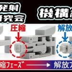 モーター射出にも関わらず、ほぼ無回転の球を連射できる「挟み込み式」の射出機構が搭載されている。