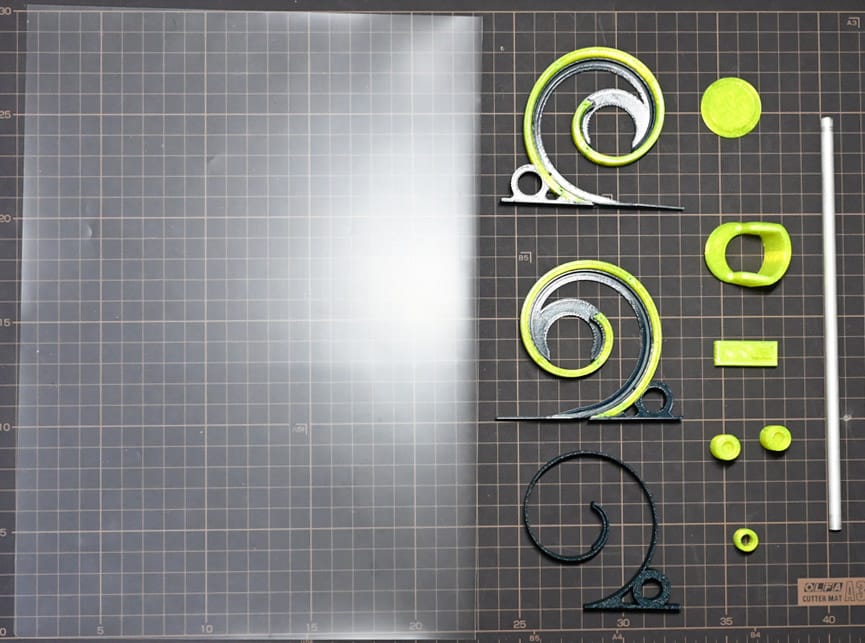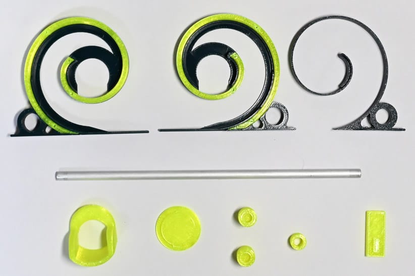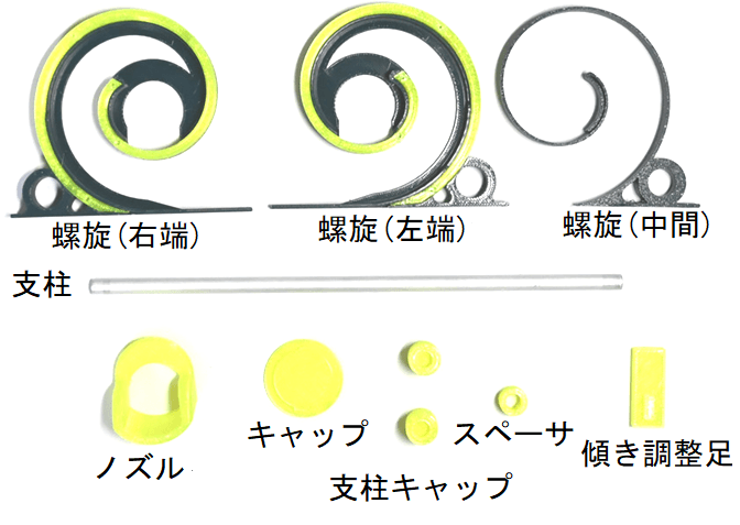 最初は両端の時の螺旋だけで保持する構想だったけど、試作した結果「支柱と中間が無いと全体の形状が維持できない」3ことが判明したので実装した部分。