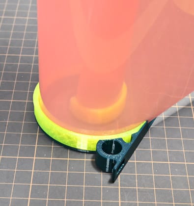 ビー玉を左右のどちらから排出するかを決め、反対側の螺旋の足の穴に「傾き調整足」を付けてかさ上げする。