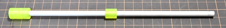 支柱の片側にだけにキャップを付け、ついでに螺旋(中間)取付用のスペーサも支柱の真ん中あたりに入れておく。